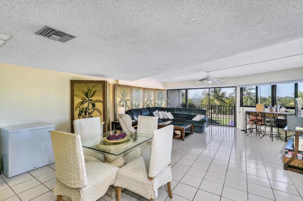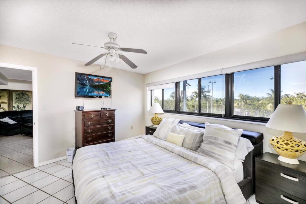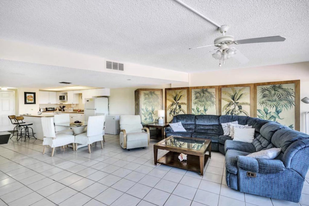 This recently remodeled and upgraded 2 bedroom, 2 bathroom, Ocean Front Condo with a balcony has a view of the park and tennis courts.